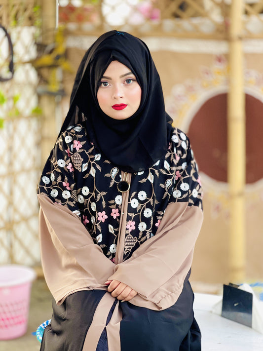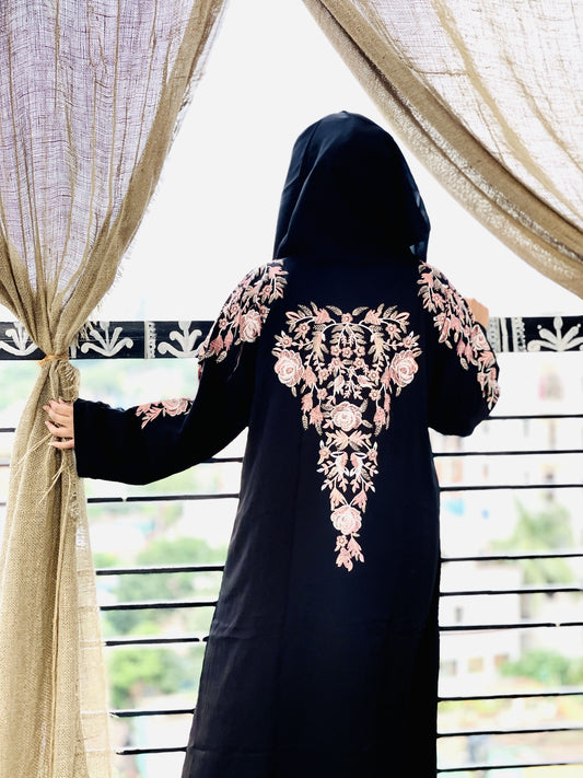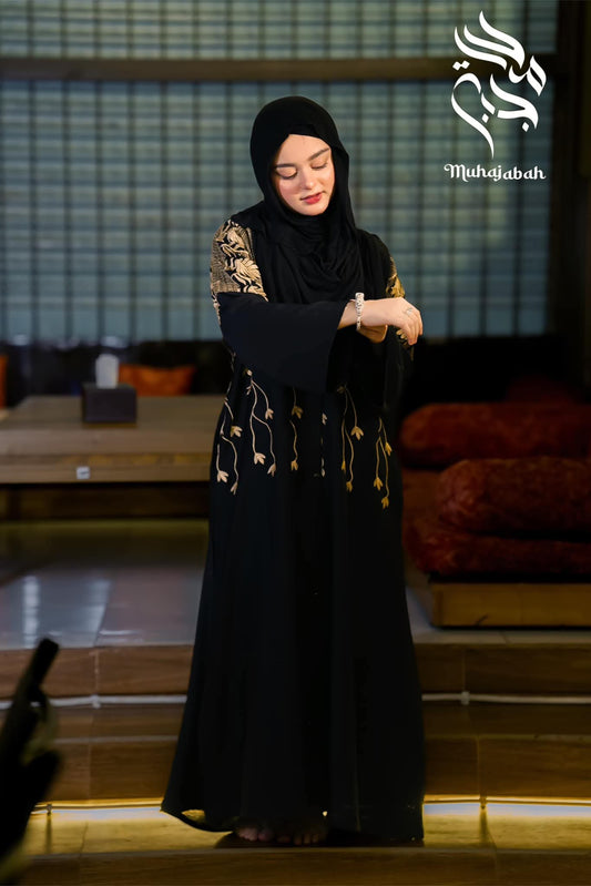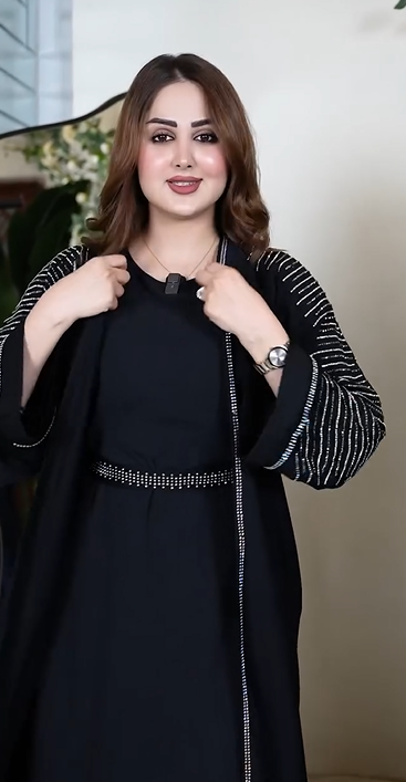 Elegant Black Abaya with Stylish Silver Stone Embellishments
